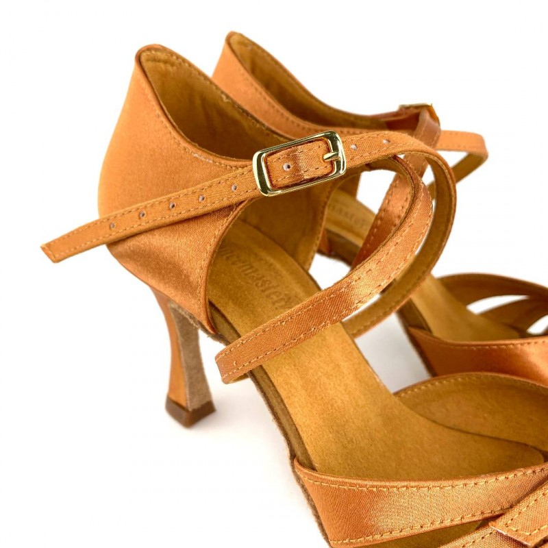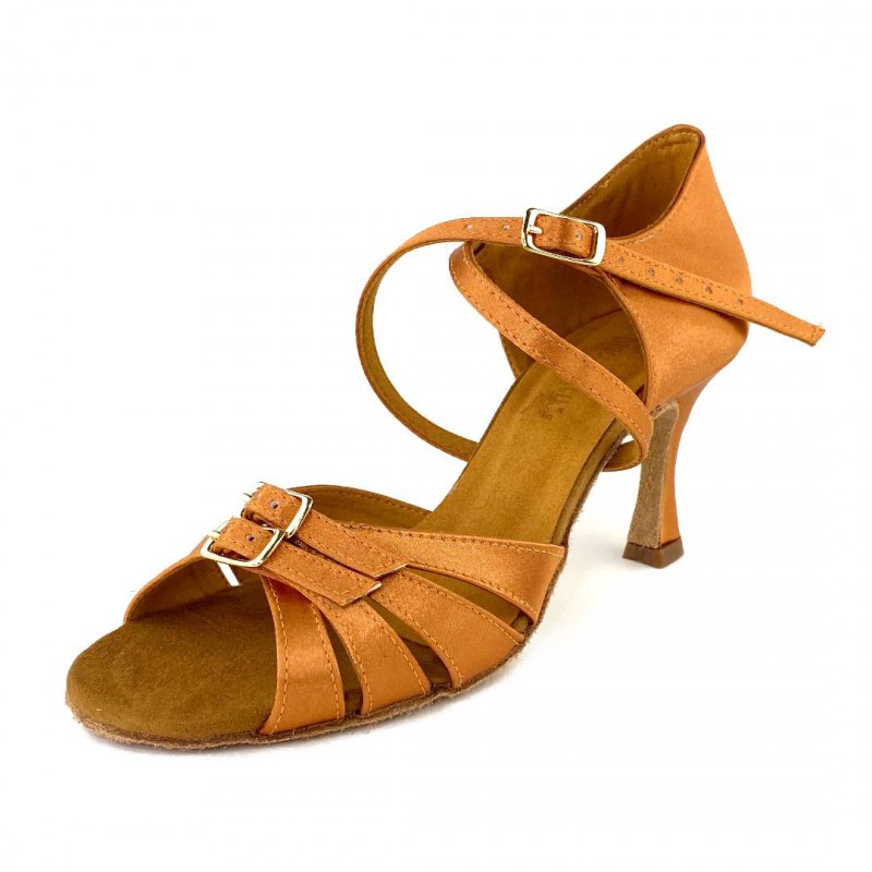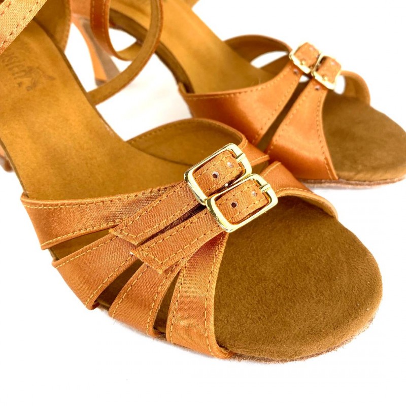 Женские туфли для латиноамериканских танцев. Туфли имеют мягкую замшевую подошву, что позволяет достичь максимального скольжения по полу. Супинатор в такой танцевальной обуви выполнен до подушечки стопы и может гнуться, что позволит ногам долго не уставать при продолжительных тренировках. Особенность модели - регулировка объема стопы.