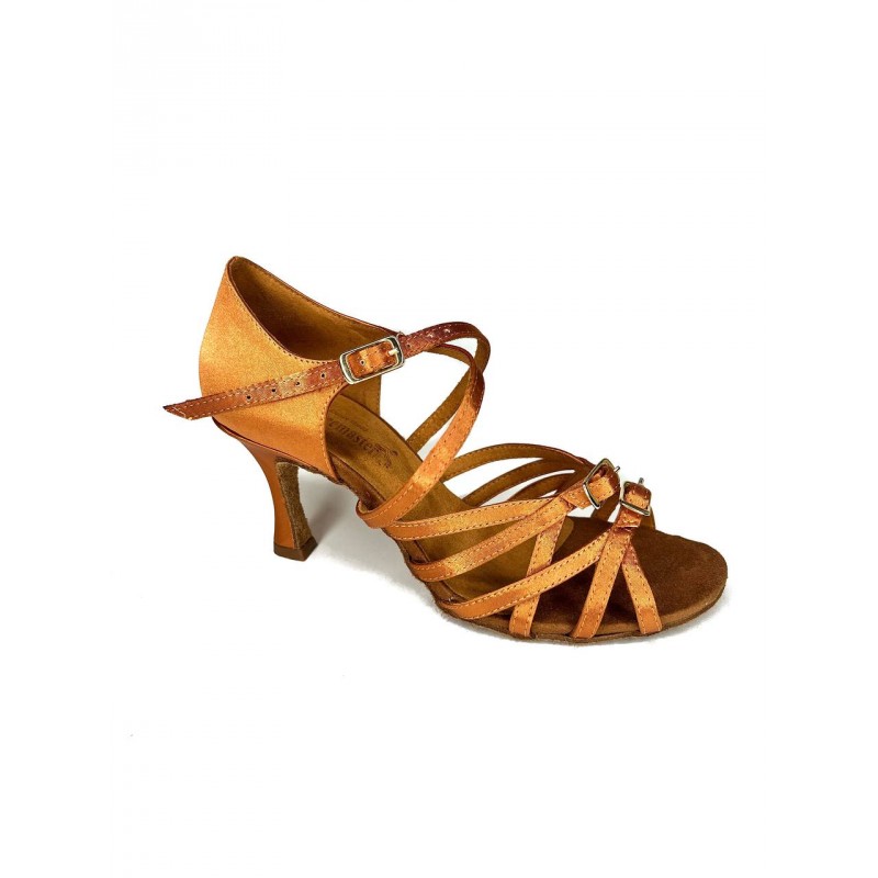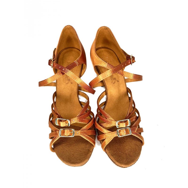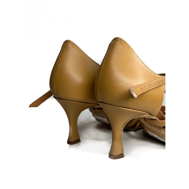 Женские туфли для латиноамериканских танцев. Туфли имеют мягкую замшевую подошву, что позволяет достичь максимального скольжения по полу. Супинатор в такой танцевальной обуви выполнен до подушечки стопы и может гнуться, что позволит ногам долго не уставать при продолжительных тренировках. Особенность модели - регулировка объема стопы.